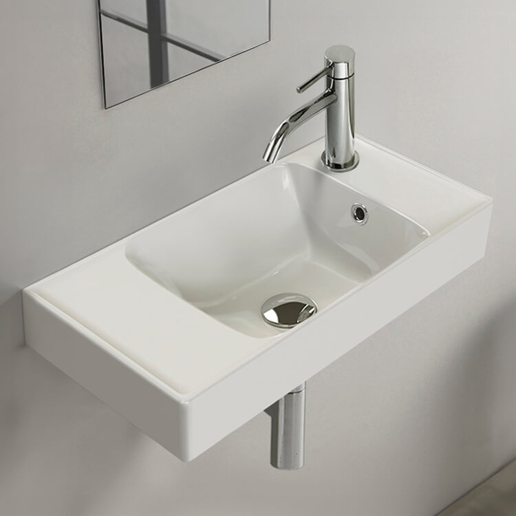 | Short Description: | 23.6" modern, sleek self-rimming or wall mounted bathroom sink. Sink includes one faucet hole on the right side of the sink and an overflow. This beautiful, space saving bathroom sink is made of high-quality white ceramic and perfect for small bathroom settings. Sink is designed by luxury and well known Turkish brand Cerastyle. |