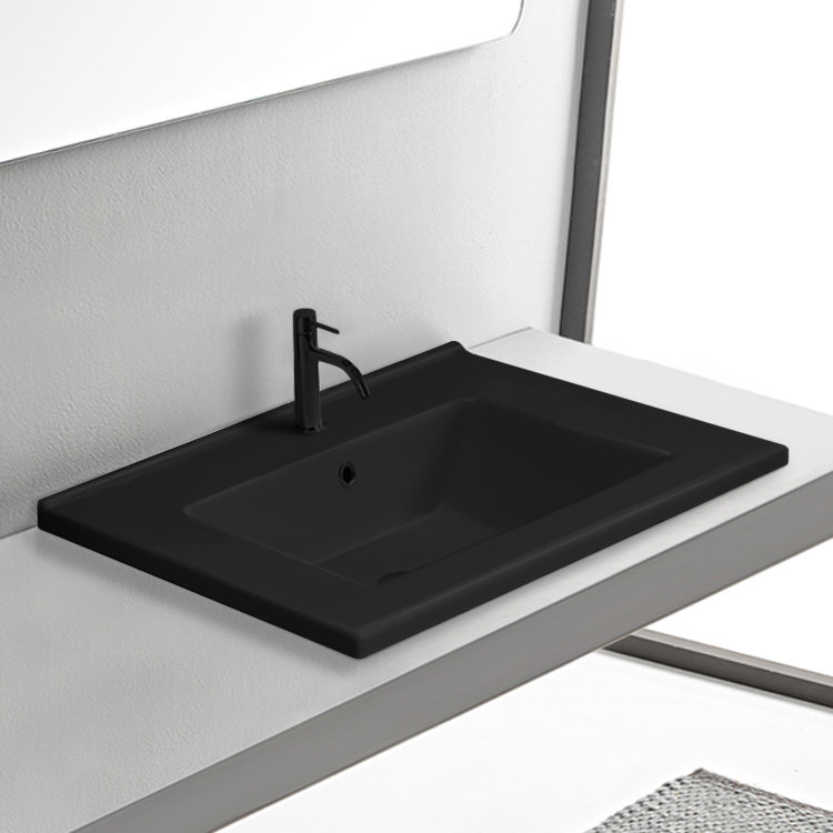 Product Name: | Black Ceramic Drop In Bathroom Sink, Rectangular |