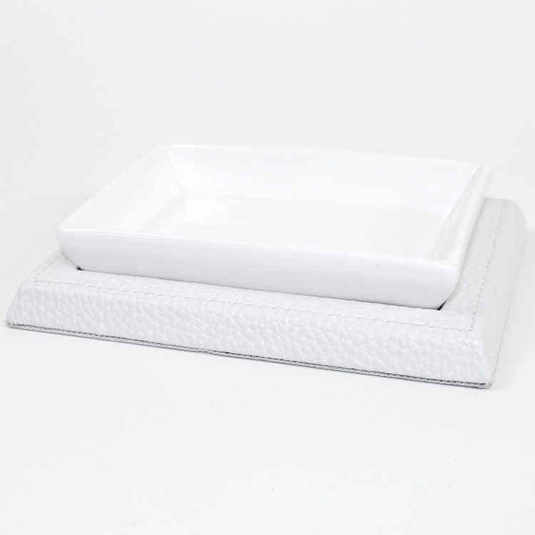 | Product Name: | Rectangle White Faux Leather Soap Holder |