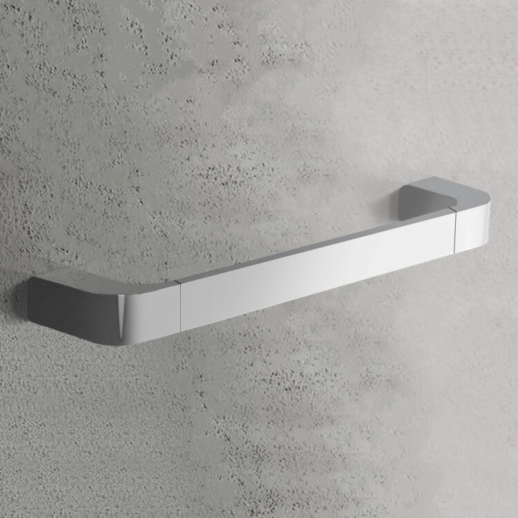 Short Description: | A decorative piece. Contemporary in design, easily mounted on your wall, this this 14 inch bathroom towel bar is made in brass and finished in chrome. It may also be used as a safety rail and grab bar. |