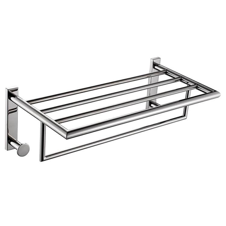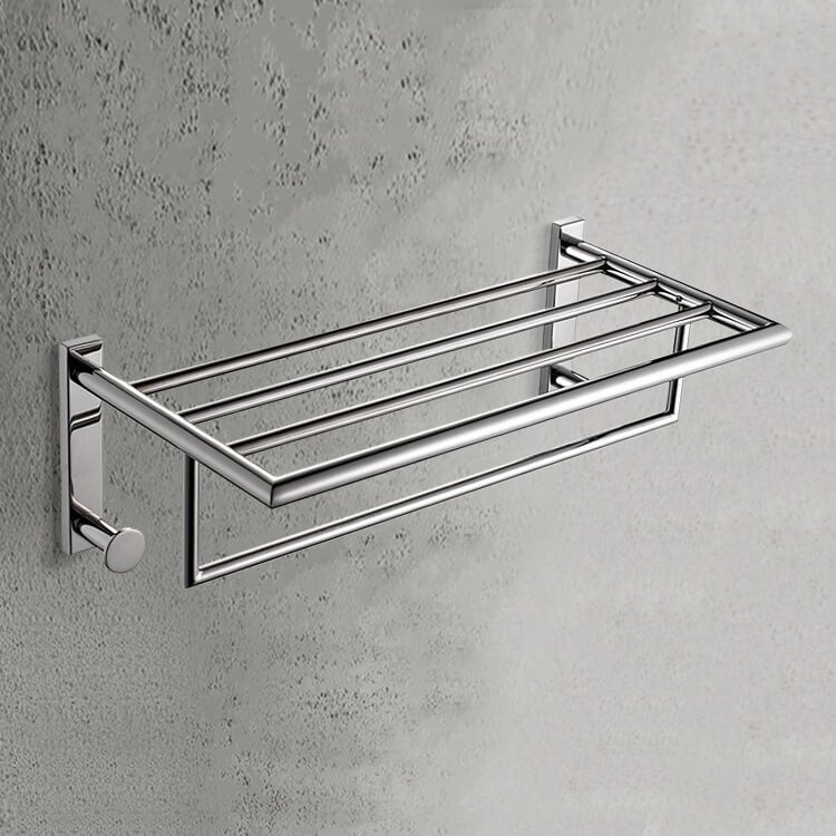 Short Description: | This modern towel rack is part of the Gedy Project collection. Wall mounted towel rack is in a polsihed chrome finish and features a towel/robe hook on each side. Made from stainless steel, this rectangle train rack is the perfect accessory to add to your contemporary or modern style bathroom |