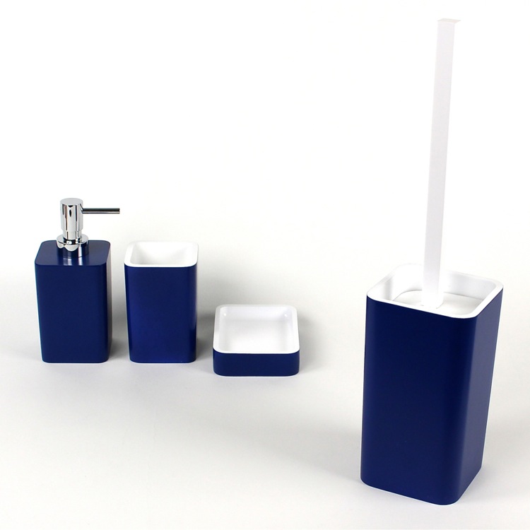 | Short Description: | Stylish, modern toilet brush holder with bristle brush made of resin with a blue finish. |