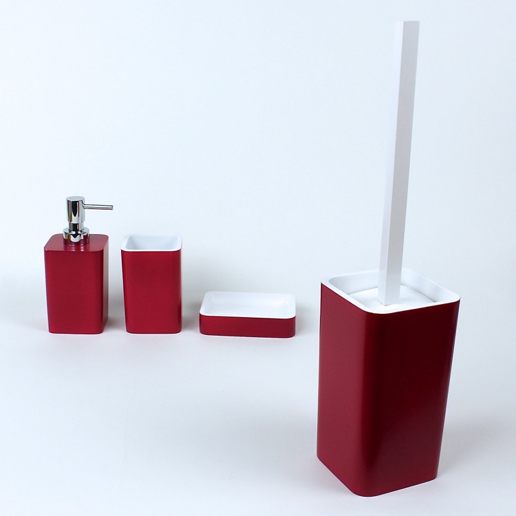 | Short Description: | Stylish, modern toilet brush holder with bristle brush made of resin with a ruby red finish. |