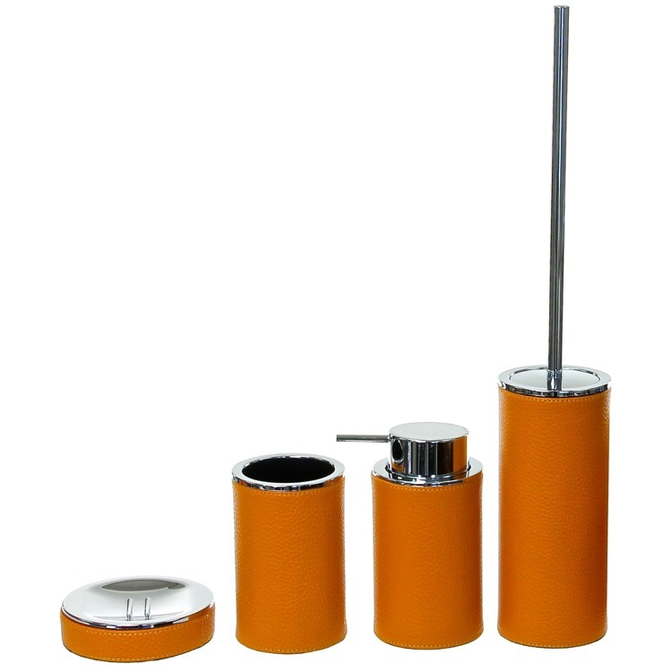 | Short Description: | Stylish bathroom accessory set including soap dish, soap dispenser, toilet brush holder, and toothbrush holder. Available in orange. From the Gedy Vogue collection. |