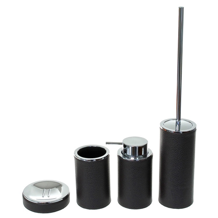 | Short Description: | Luxury bathroom accessory set including soap dish, soap dispenser, toilet brush holder, and toothbrush holder. Available in wenge. From the Gedy Vogue collection. |