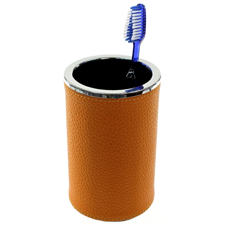 Product Name: | Round Toothbrush Holder Made From Faux Leather in Orange Finish |
