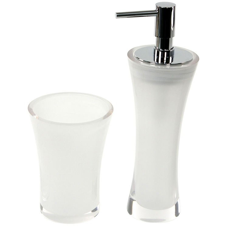Short Description: | Trendy, decorative bathroom accessories set which includes toothbrush holder and soap dispenser. Collection made of thermoplastic resins in a transparent finish. |