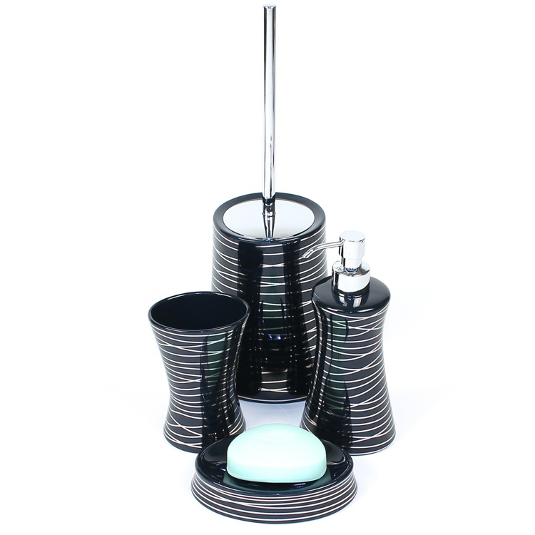 | Short Description: | Stylish, decorative bathroom accessory set which includes toothbrush holder, toilet brush holder, soap dispenser, and soap dish. Collection made of pottery. |