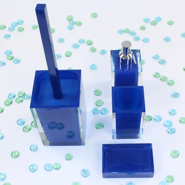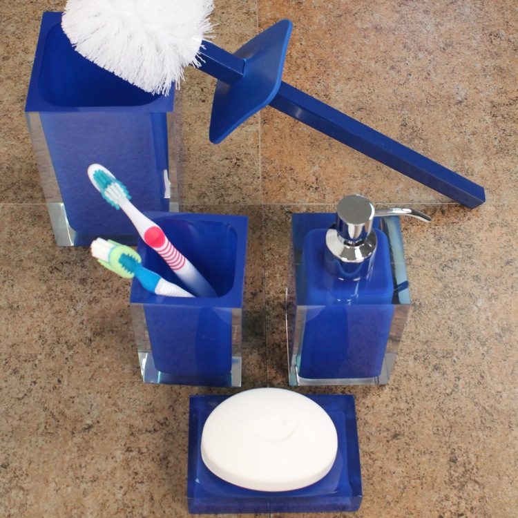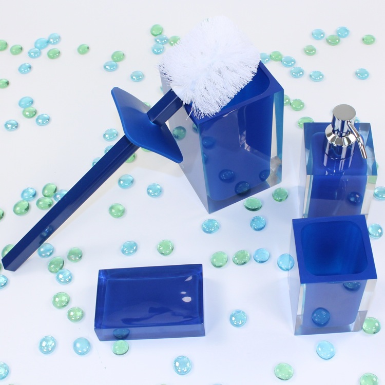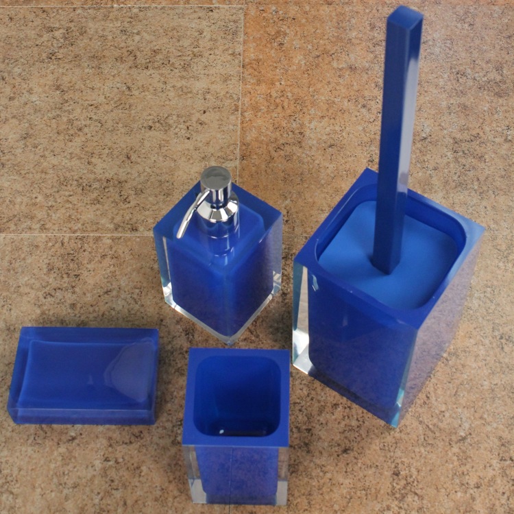 Short Description: | Contemporary blue accessory set with included soap dispenser, toothbrush holder, toilet brush holder, and a soap dish. From the Gedy Rainbow Collection. |