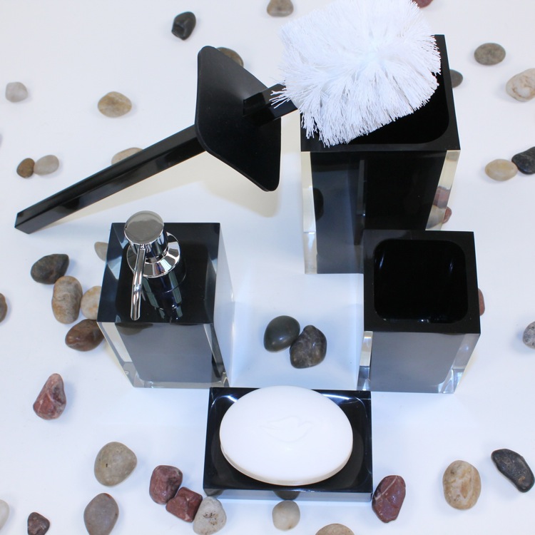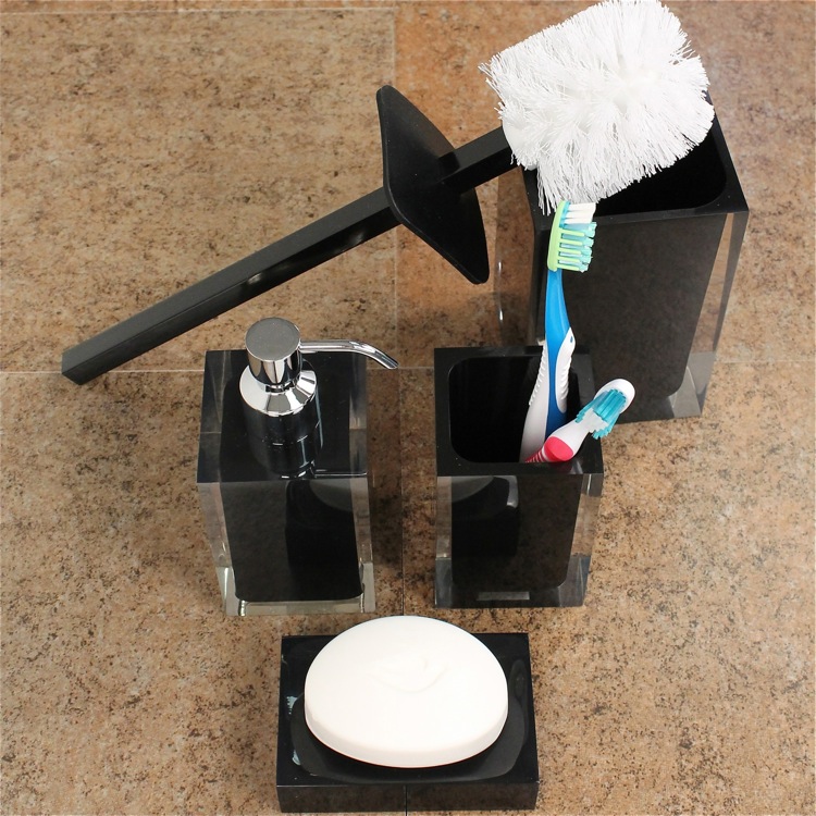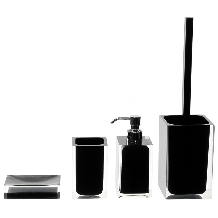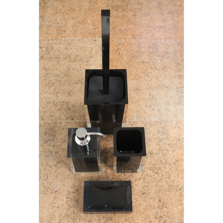 | Short Description: | Contemporary black accessory set with included soap dispenser, toothbrush holder, toilet brush holder, and a soap dish. From the Gedy Rainbow Collection. |