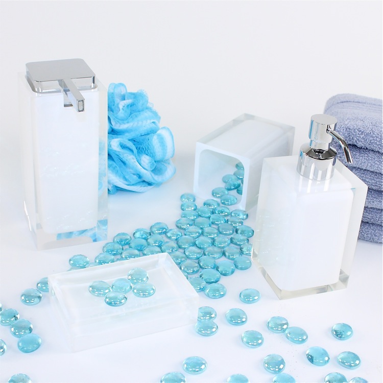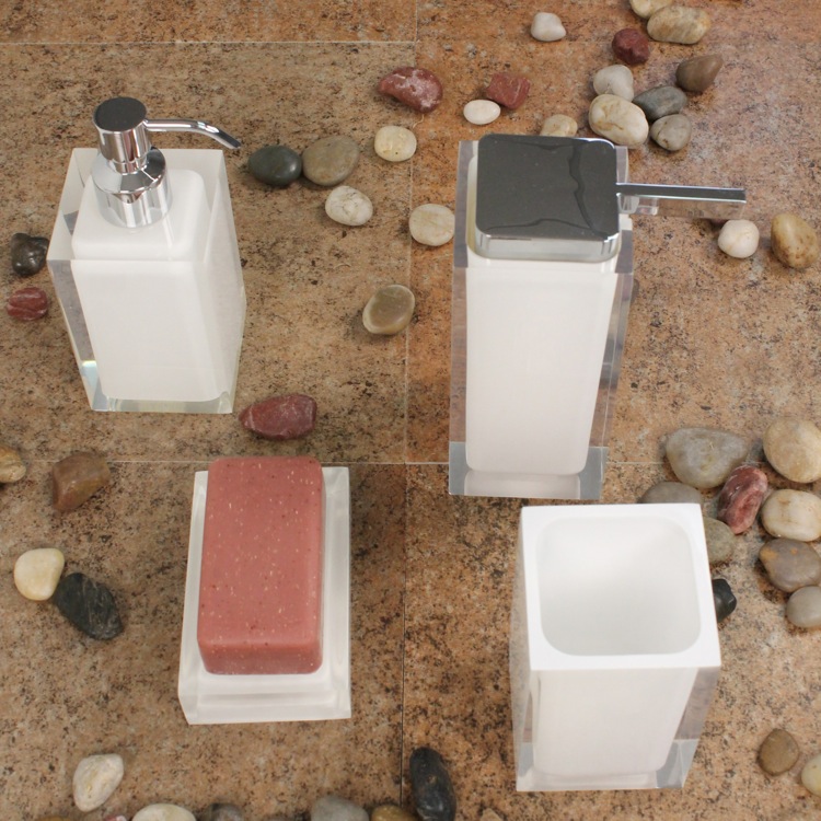 Nice grouping of modern bath accessories. Clean modern design. Well made and rather elegant. I particularily like the soap dispenser. |