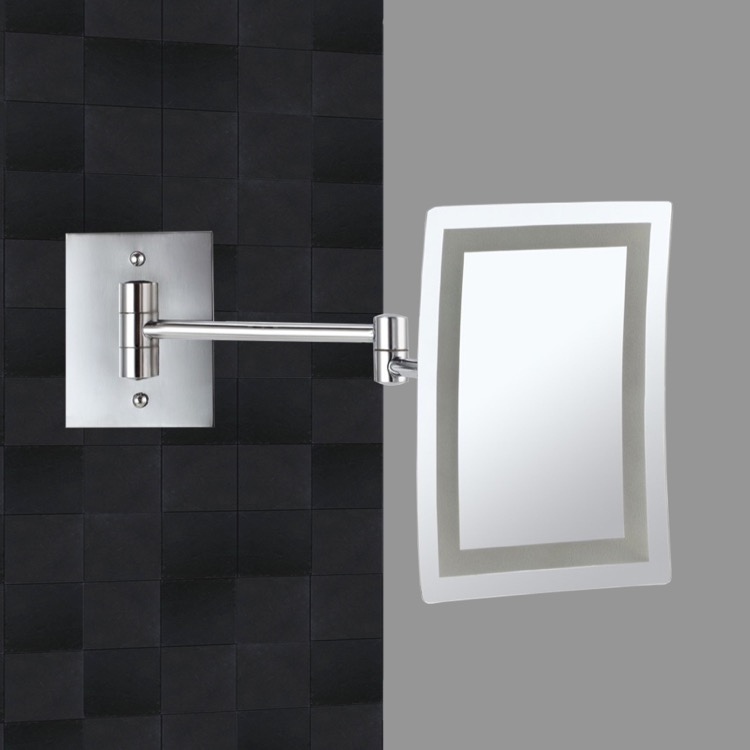 | Short Description: | Lighted 3x magnification makeup mirror features built-in LED light. Square wall mounted single face mirror made from brass, and available in a chrome finish. |