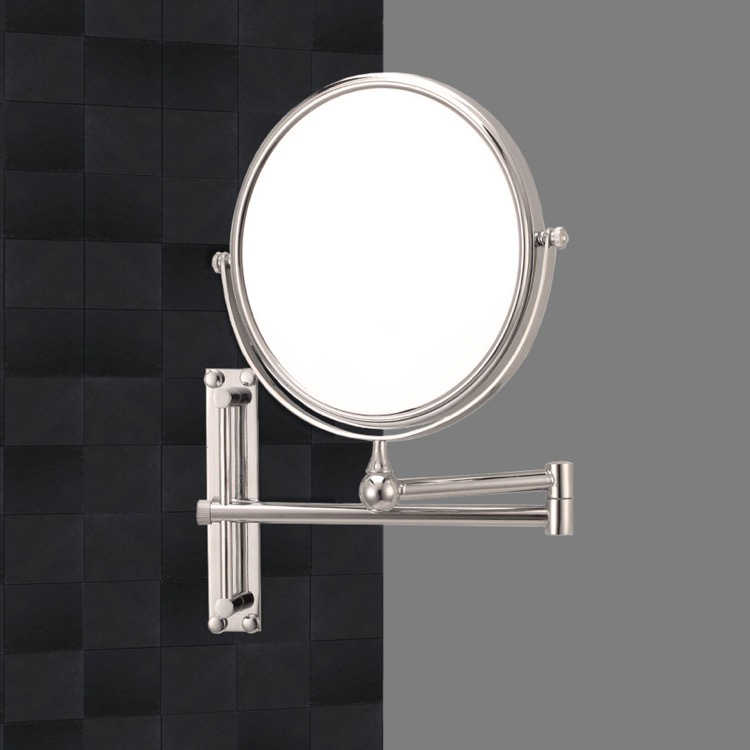 | Short Description: | Made from high quality brass, this round wall mounted makeup mirror is available in a satin nickel finish. A double faced mirror featuring 3x magnification and extendable arms. |