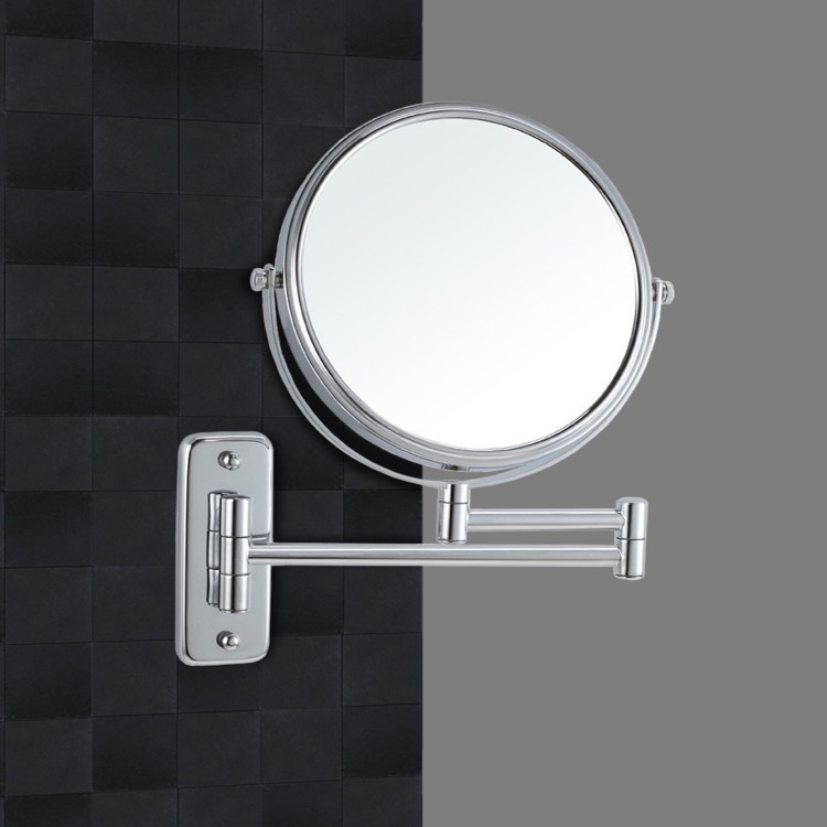 | Short Description: | Extendable round wall mounted makeup mirror made of brass available in chrome. Double faced mirror featuring 3x magnification. |