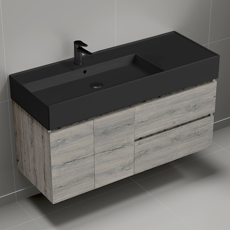 47 Inch Wall Mount Grey Oak Bathroom Vanity Cabinet.