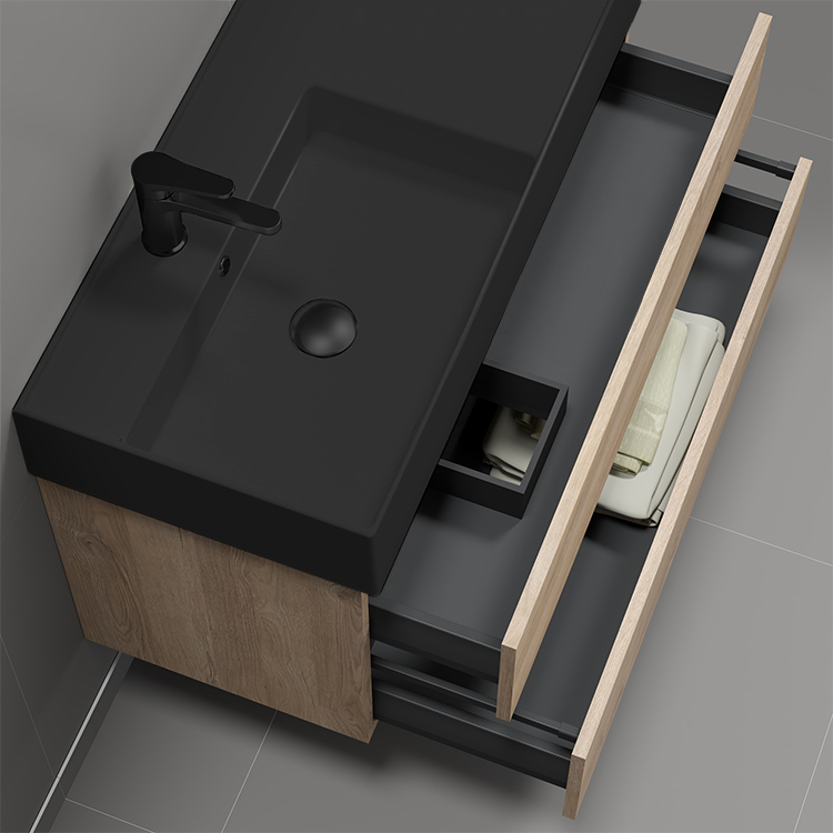 40" Wall Mounted Brown Oak Bathroom Vanity Cabinet.