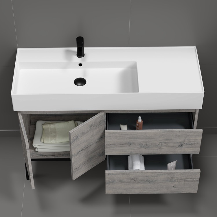 47 Inch Wall Mount Grey Oak Bathroom Vanity Cabinet.