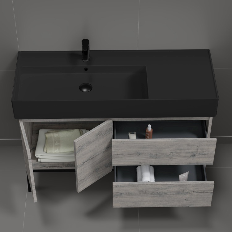 47 Inch Wall Mount Grey Oak Bathroom Vanity Cabinet.