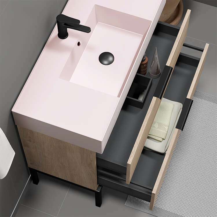 Product Name: | Modern Bathroom Vanity, 40", Pink Ceramic Sink, Free Standing |