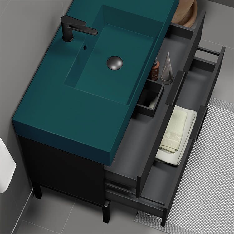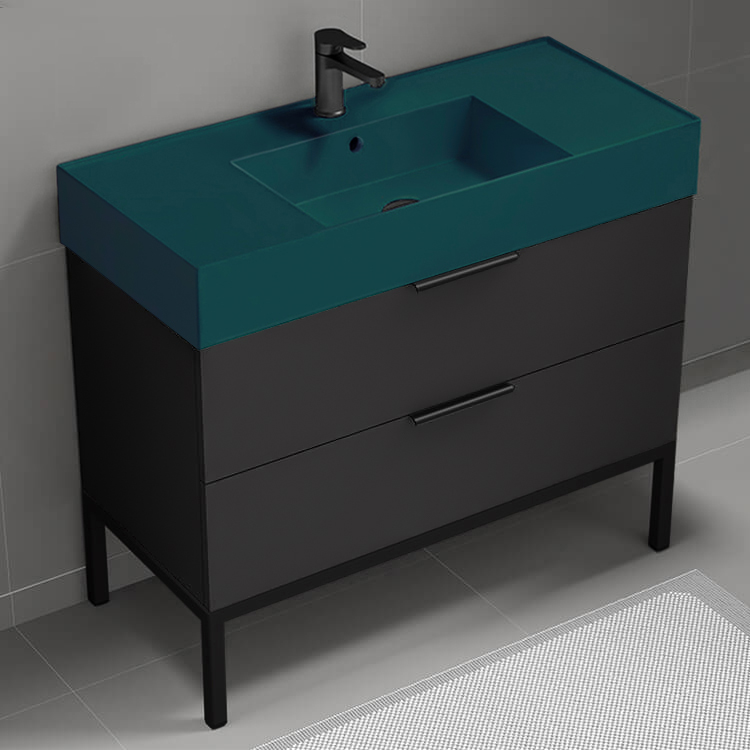 Product Name: | Modern Black Bathroom Vanity, 40", Green Ceramic Sink, Free Standing |