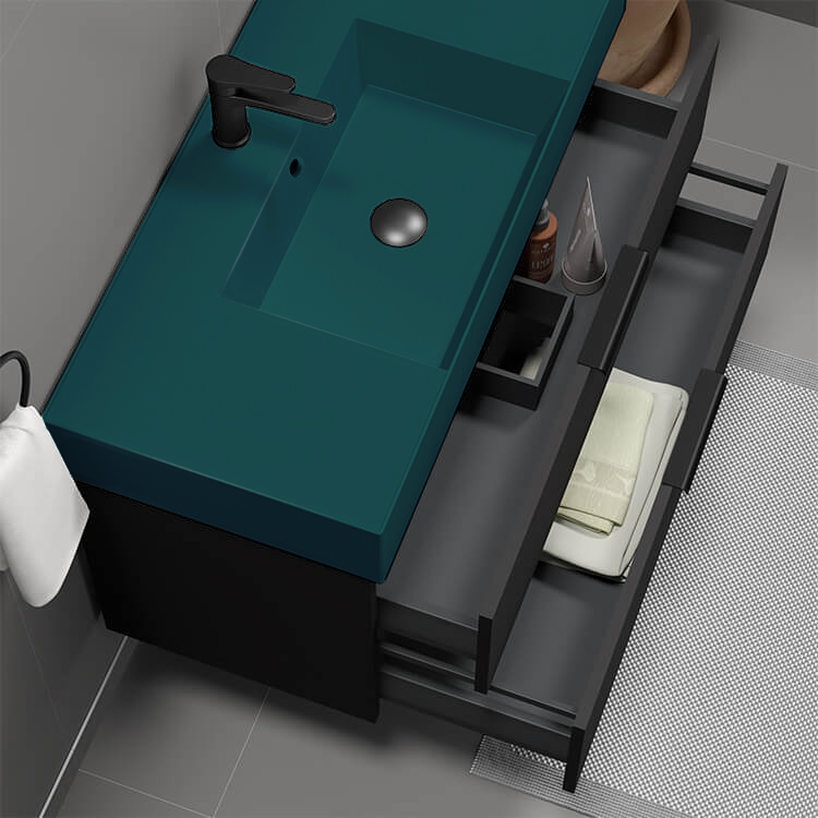 | Product Name: | Floating Black Bathroom Vanity, Modern, 40", Green Ceramic Sink |