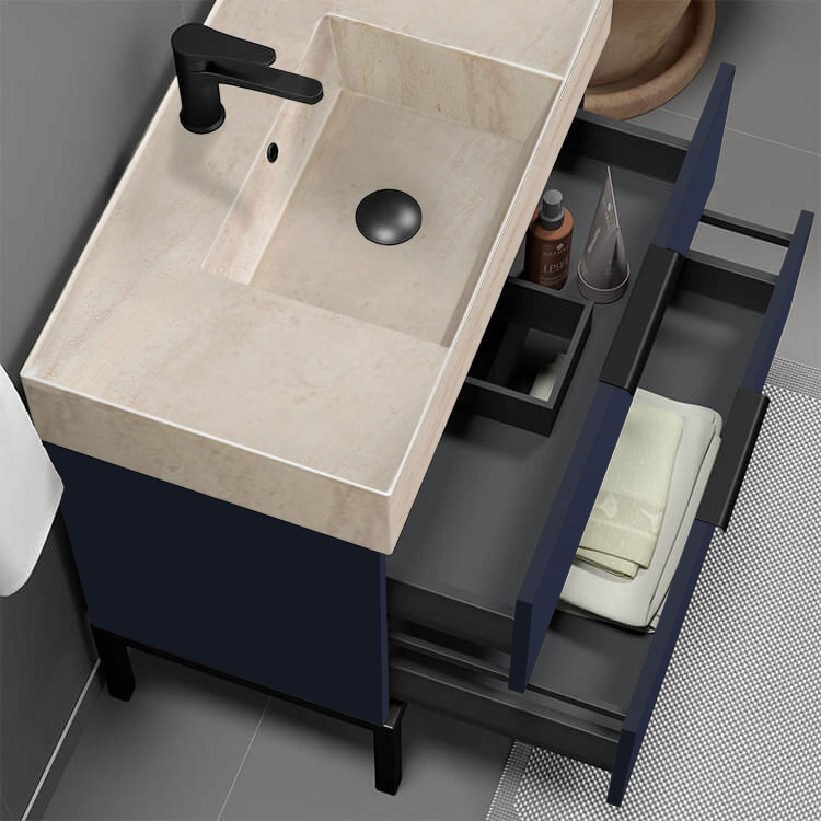 Product Name: | Modern Bathroom Vanity, Blue, 32", Travertine Style Sink, Free Standing |