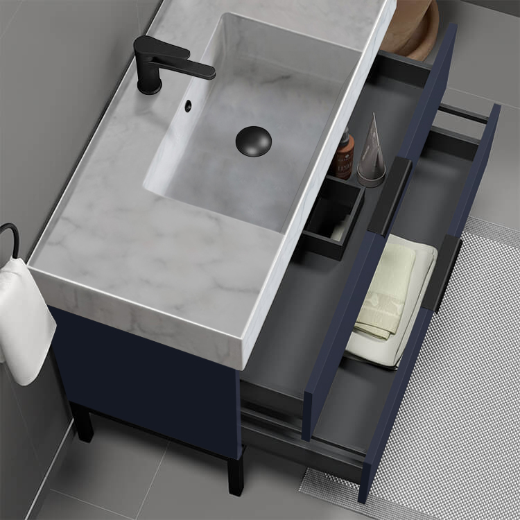 Product Name: | Modern Bathroom Vanity, Blue, 40", Marble Style Sink, Free Standing |
