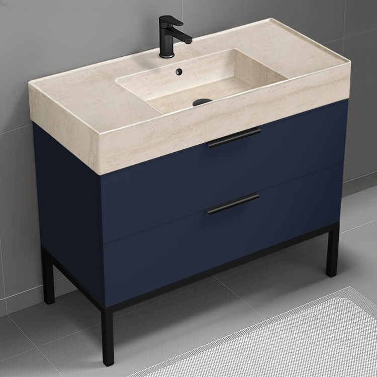 | Product Name: | Modern Bathroom Vanity, Blue, 40", Travertine Style Sink, Free Standing |