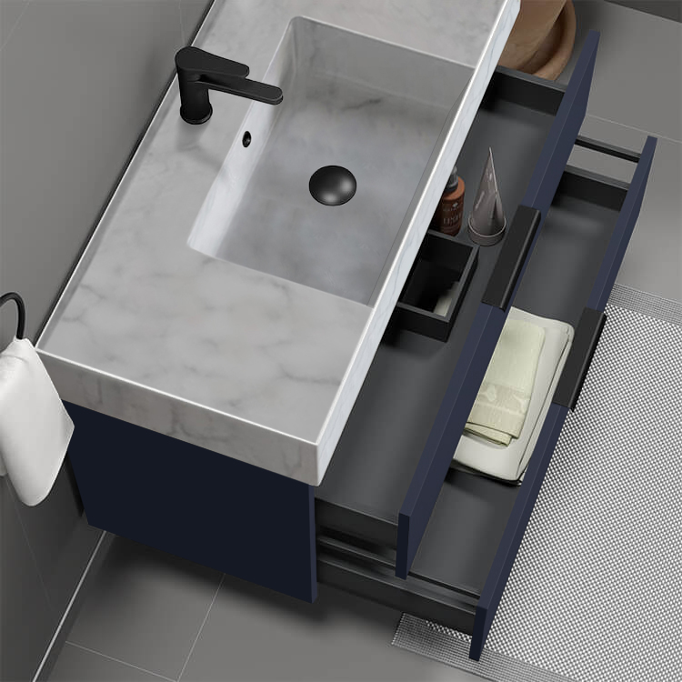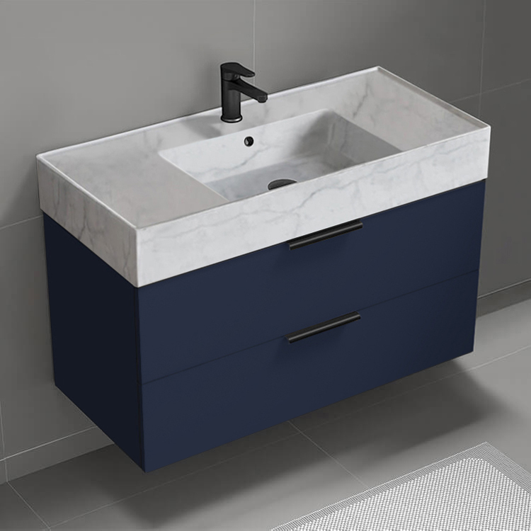 Product Name: | Floating Bathroom Vanity, Modern, Blue, 40", Marble Style Sink |