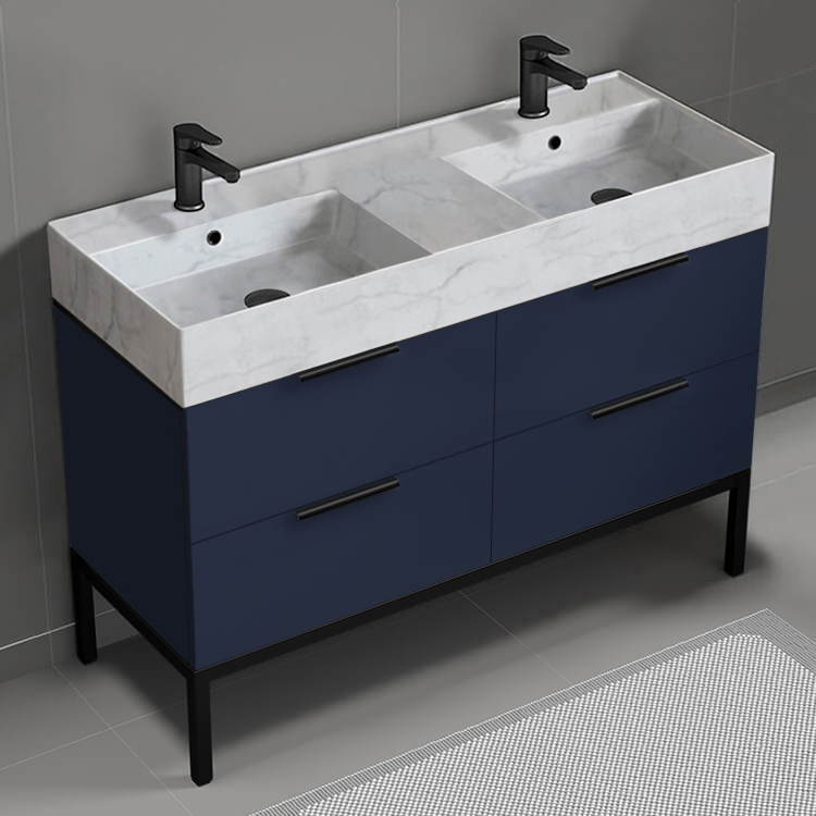 Product Name: | Modern Double Bathroom Vanity, Blue, 48", Marble Style Sink, Free Standing |