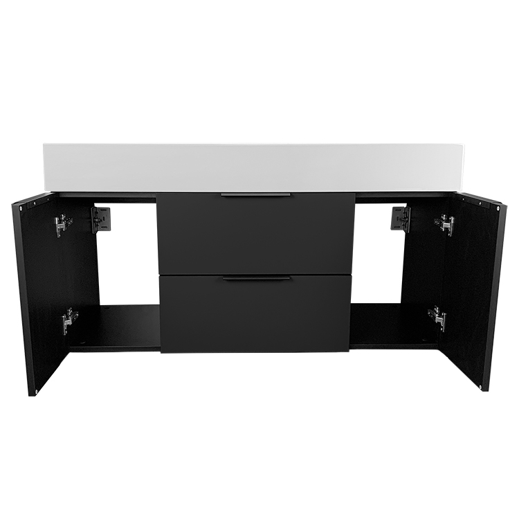 47 Inch Wall Mount Matte Black Bathroom Vanity Cabinet With Black Handles.