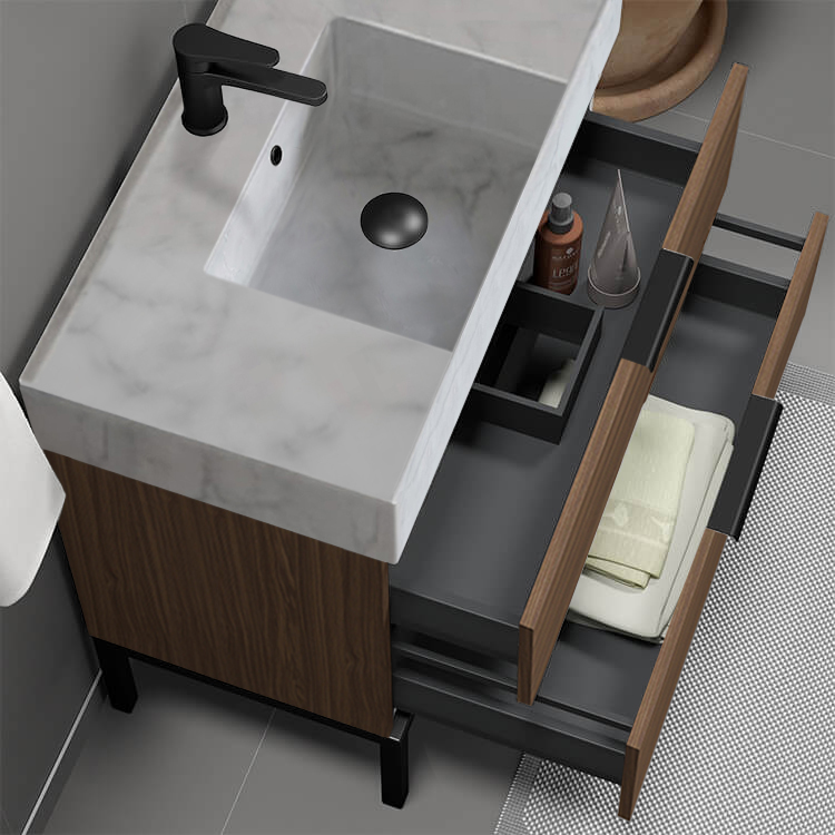 | Product Name: | Modern Bathroom Vanity, Walnut, 32", Marble Style Sink, Free Standing |