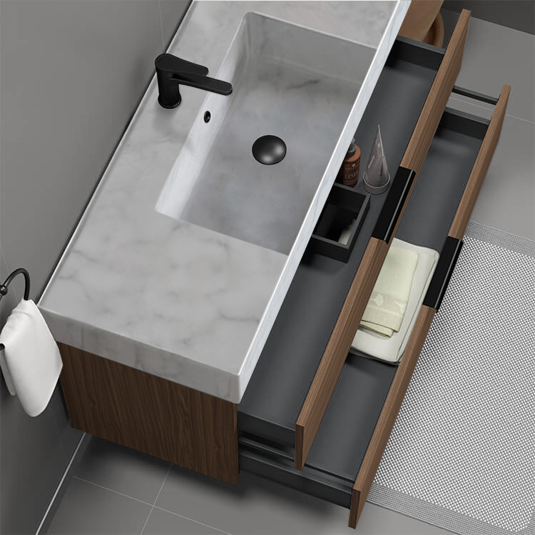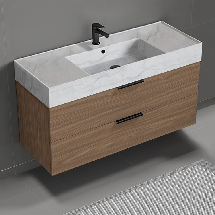 | Product Name: | Floating Bathroom Vanity, Modern, Walnut, 48", Marble Style Sink |