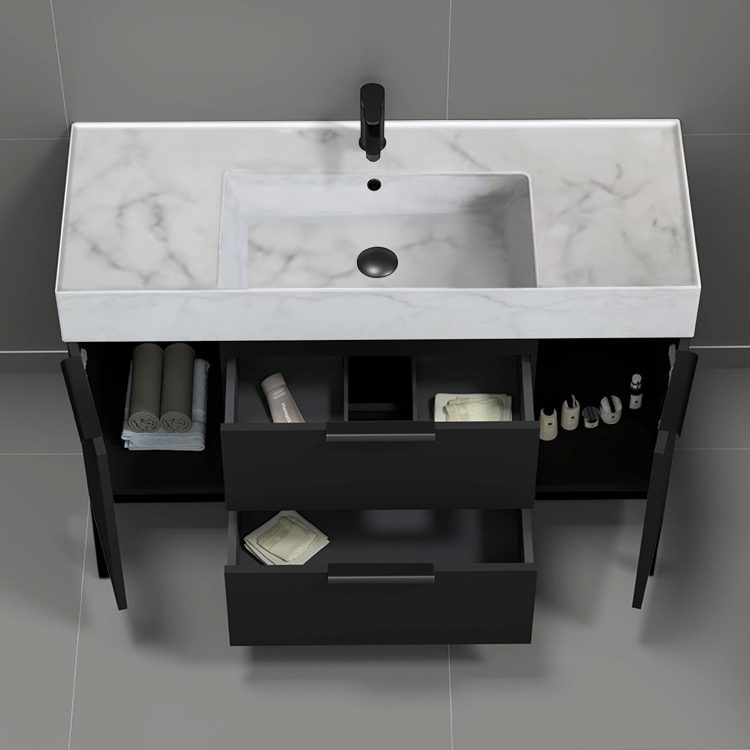 | Product Name: | Modern Black Bathroom Vanity, 48", Marble Style Sink, Free Standing |