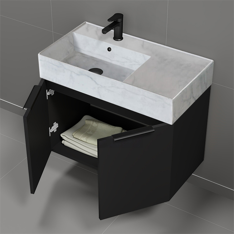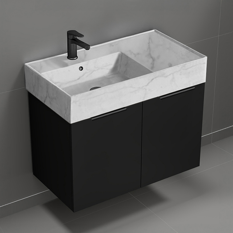 | Product Name: | Floating Black Bathroom Vanity, Modern, 32", Marble Style Sink |