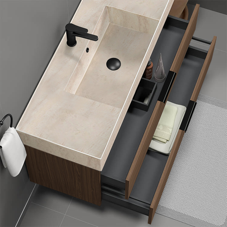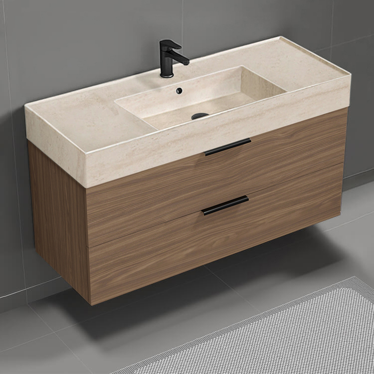| Product Name: | Floating Bathroom Vanity, Modern, Walnut, 48", Travertine Style Sink |