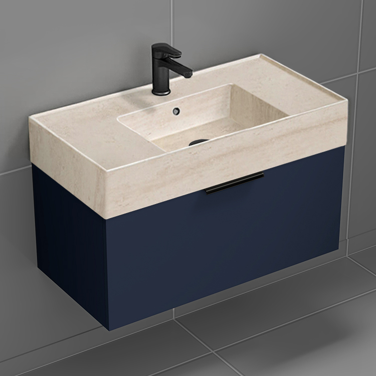 | Product Name: | Floating Bathroom Vanity, Modern, Blue, 32", Travertine Style Sink |