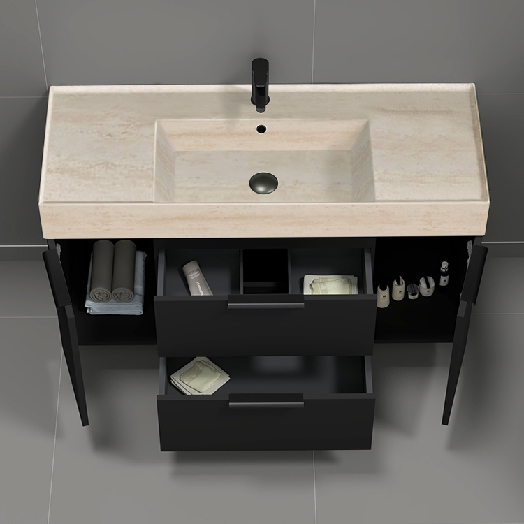 | Product Name: | Floating Black Bathroom Vanity, Modern, 48", Travertine Style Sink |