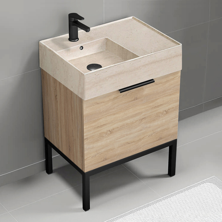 | Product Name: | Modern Small Bathroom Vanity, 24", Travertine Style Sink, Free Standing |