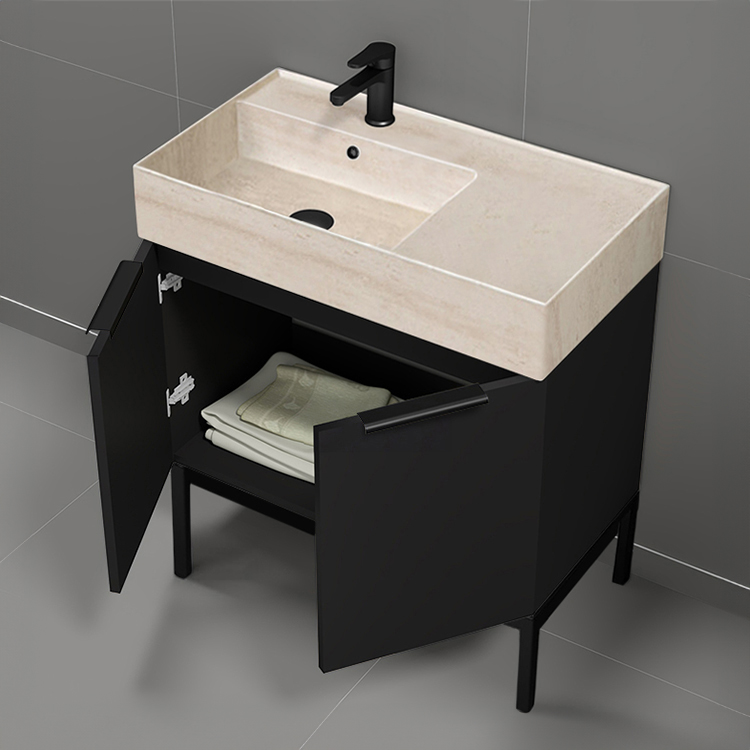 Product Name: | Modern Black Bathroom Vanity, 32", Travertine Style Sink, Free Standing |