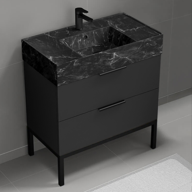 Product Name: | Modern Black Bathroom Vanity, 32", Black Marble Style Sink, Free Standing |
