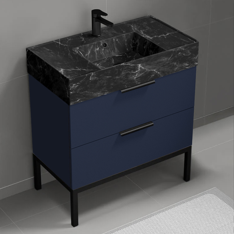 | Product Name: | Modern Bathroom Vanity, Blue, 32", Black Marble Style Sink, Free Standing |