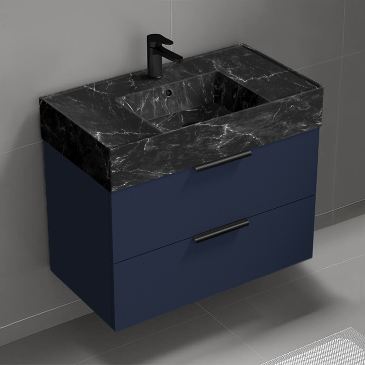 | Product Name: | Floating Bathroom Vanity, Modern, Blue, 32", Black Marble Style Sink |