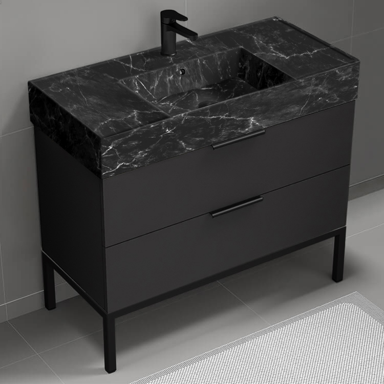 | Product Name: | Modern Black Bathroom Vanity, 40", Marble Style Sink, Free Standing |