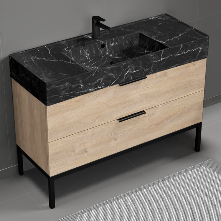 | Product Name: | Modern Bathroom Vanity, 48", Black Marble Style Sink, Free Standing |