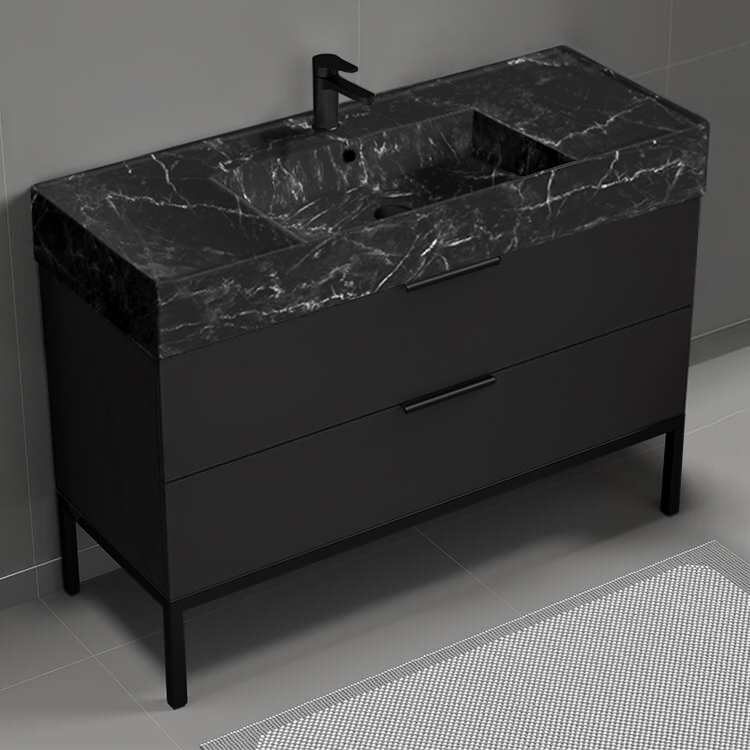 | Product Name: | Modern Black Bathroom Vanity, 48", Black Marble Style Sink, Free Standing |