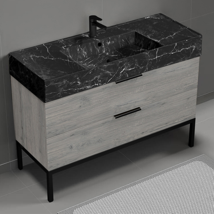 | Product Name: | Modern Bathroom Vanity, 48", Black Marble Style Sink, Free Standing |