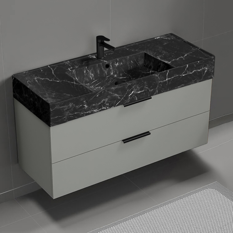 | Product Name: | Floating Bathroom Vanity, Modern, 48", Black Marble Style Sink |