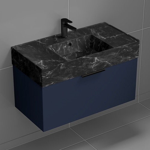| Product Name: | Floating Bathroom Vanity, Modern, Blue, 32", Black Marble Style Sink |