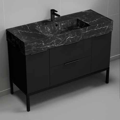 | Product Name: | Modern Black Bathroom Vanity, 48", Black Marble Style Sink, Free Standing |